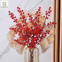 ミニマリストスタイルレッドラズベリーステム人工プラスチックベリーウェディングホームデスクトップクリスマスデコレーション