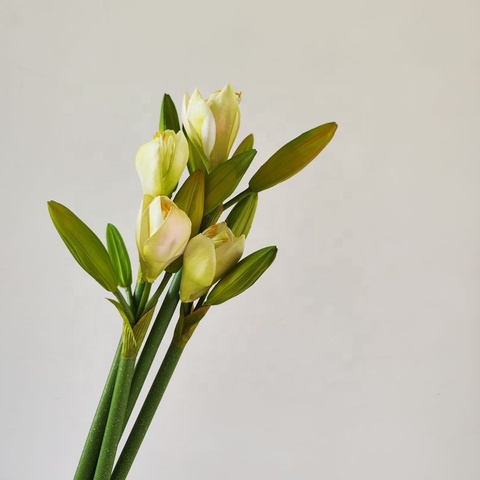 4ヘッド人工アマリリスリアルタッチ植物シルク花92CMレッドグリーンイエローウェディングホームデコレーション