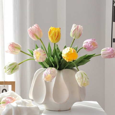 인공 앵무새 튤립 신부 꽃 실크 라텍스 코팅 튤립 진짜 터치 웨딩 호텔 장식 테이블 센터 조각