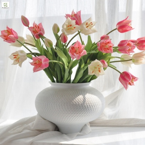하이 퀄리티 인공 PU 리얼 터치 화이트 오픈 튤립 부드러운 꽃 꽃다발 결혼식 홈 레스토랑 파티 장식 꽃