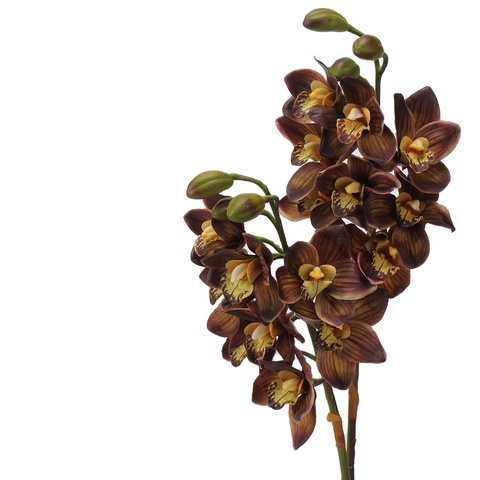 Yüksek kalite 79cm 8 kafaları yapay büyük Cymbidium orkide lateks gerçek dokunmatik çiçek sonbahar DK kahverengi düğün parti ev dekor için