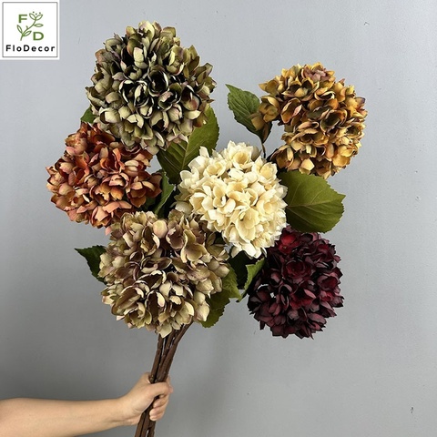Nieuw Binnen 52Cm Kunstzijde Hortensia Bloem Met Zaad Bordeauxrood Bruin Paars Voor Herfst Bruiloft Tafeldecoratie