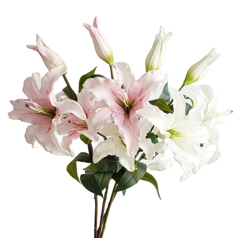 Yüksek kalite el yapımı gerçek dokunmatik PU 3 kafaları yapay zambak beyaz çiçek düğün duvar dekorasyon sevgililer için toplu toptan