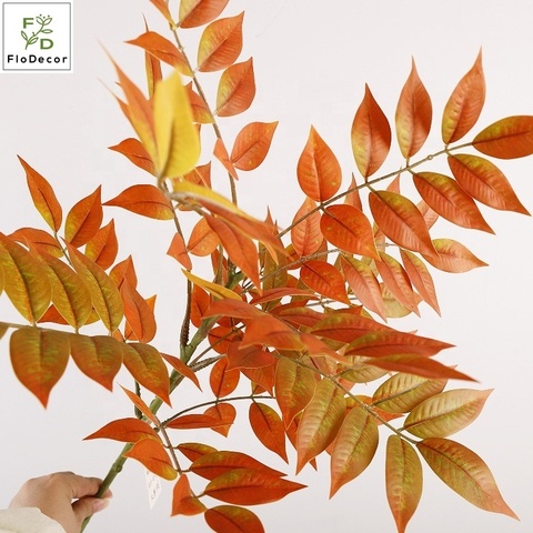 Высокое качество искусственные листья зелени длинный стебель оранжево-зеленый осенний цвет для свадьбы цветочные Валентина комнатные украшения дома