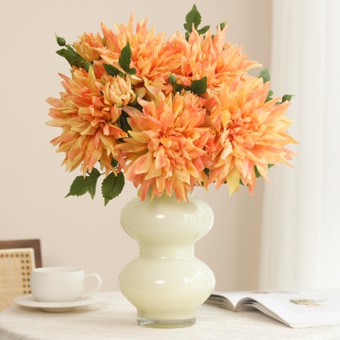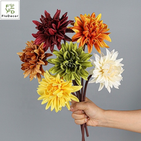 シルクフラワー人工2頭大きなダリアテーブル菊秋花ウェディングホームデコレーション