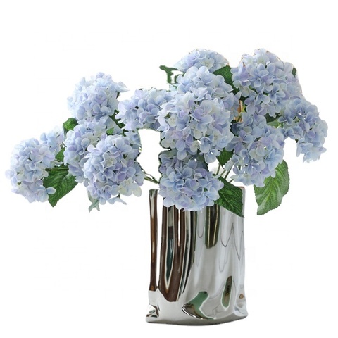 Commercio all'ingrosso di seta artificiale rosa bianco ortensia fiore steli tessuto di seta per fiore di nozze bianco rosa blu viola