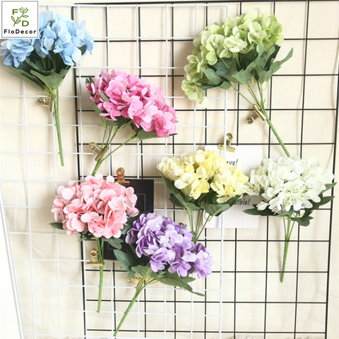 Commercio all'ingrosso di Alta Qualità di Seta Artificiale Hydrangea Bouquet Steli di Fiori Tessuto di Seta Per La Cerimonia Nuziale Fiore Bianco Rosa Blu Viola