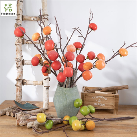Toptan popüler yapay trabzon hurması meyve Berry şubeleri noel yeni yıl açık dekorasyon için köpük