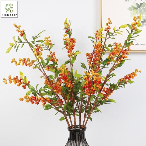 Di alta qualità in plastica artificiale autunno fiore selvaggio ramo rosso giallo per la decorazione del nuovo anno di natale