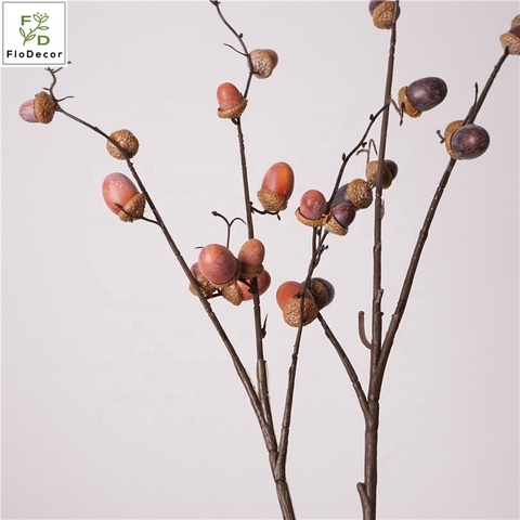 Atacado 76CM Artificial Acorn Branch Castanha Peito Porca Stem Outono Plástico Handmade para Casamento Mesa de Natal Decoração Interior