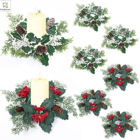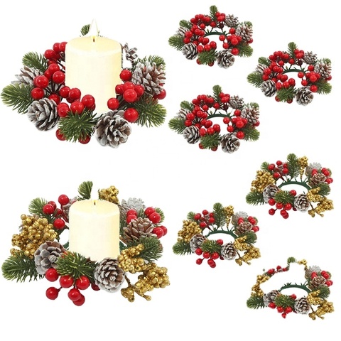 แหวนเทียนคริสมาสต์เทียมสีขาวคุณภาพสูงพวงพวงผลเบอร์รี่สีแดงสำหรับงานเทศกาลติดผนังบ้านตกแต่งงานปาร์ตี้