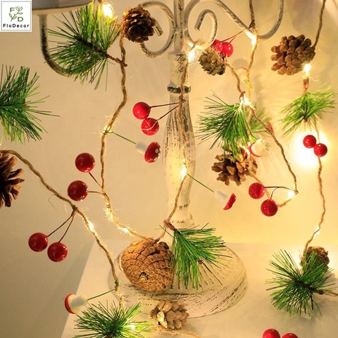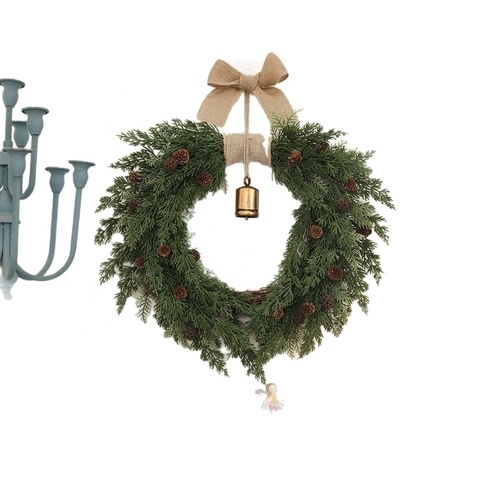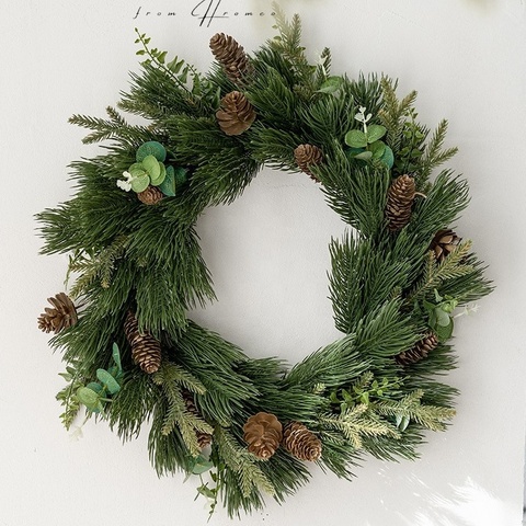 พวงมาลัยตกแต่งขนาด50ซม. พวงหรีดคริสต์มาสประดิษฐ์พร้อมลูกสนธรรมชาติจำลองพวงมาลัยแขวนกลางแจ้ง